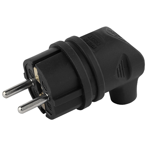 Вилка угловая V9-B-IP44 "Эра" (16 А, каучук, IP44) с заземлением, черный