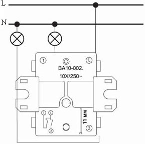 - Выключатели на ток 10 AX подходят для большинства типов ламп, включая люминесцентные.