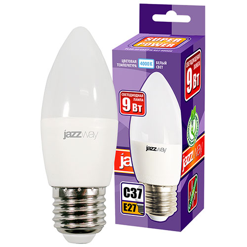 Лампа светодиодная Jazzway PLED-SP С37 9w E27 4000K (свеча, 820 лм)