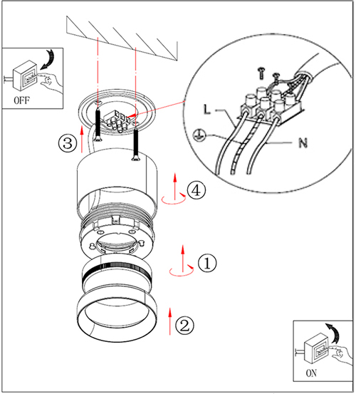 - Патрон закреплен на пружинке, за счет чего обеспечивается плотное прилегание лампы к краю светильника.